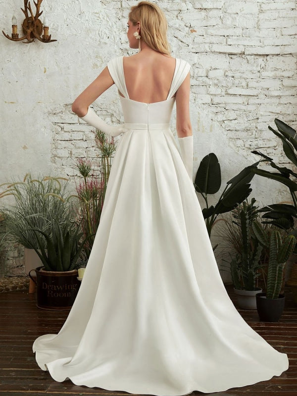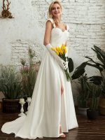 Romantic A-Line Court Train Spaghetti Straps Sweetheart Neck Satin Bridal Gown