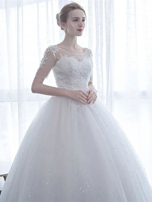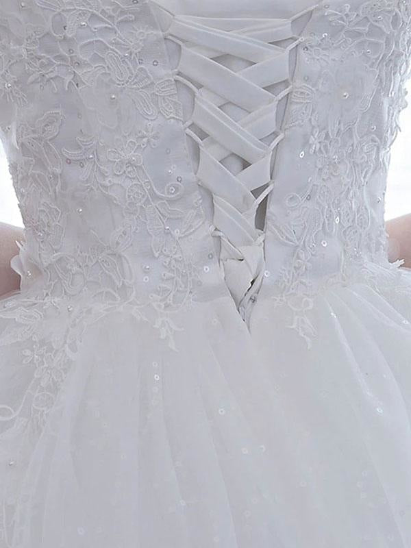 Romantic Off The Shoulder Short Sleeves Soft Tulle Lace Up Floor Length Bride Dress Eric White Design
