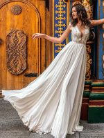 Romantic White A-Line Chiffon Lace Bridal Dress with Court Train