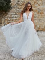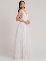 Be the first to review “Romantic White V-Neck Sleeveless Pleated Tulle A-Line Bridal Gown”
