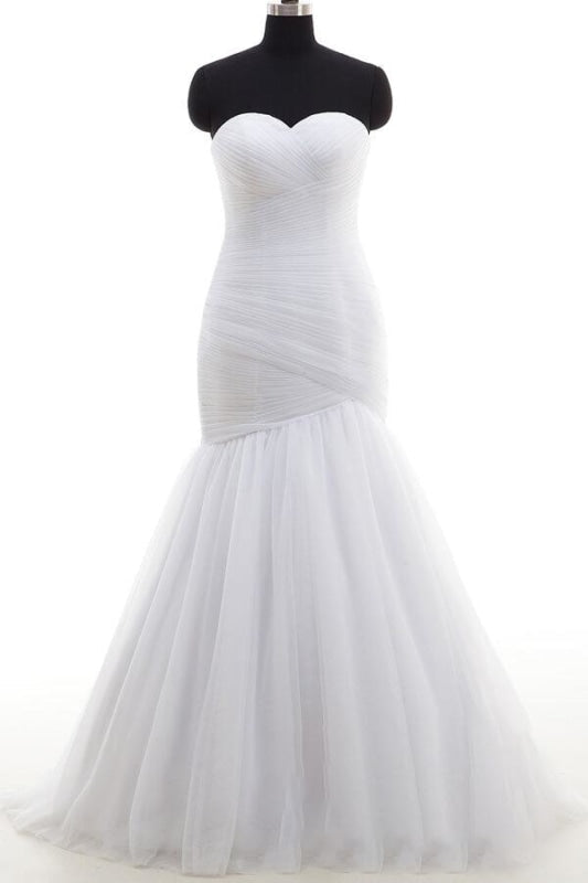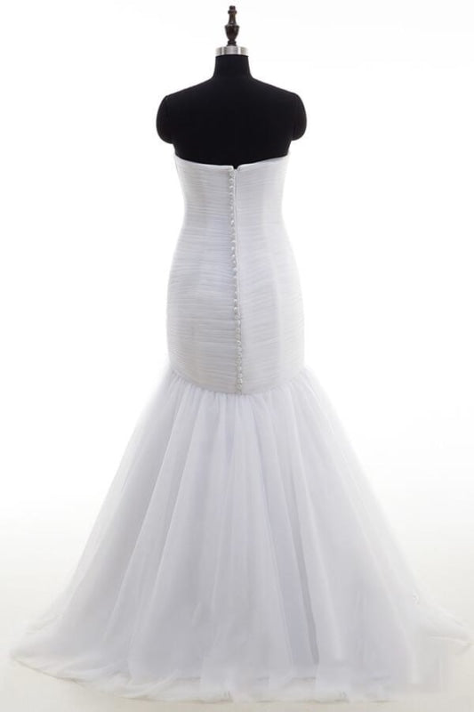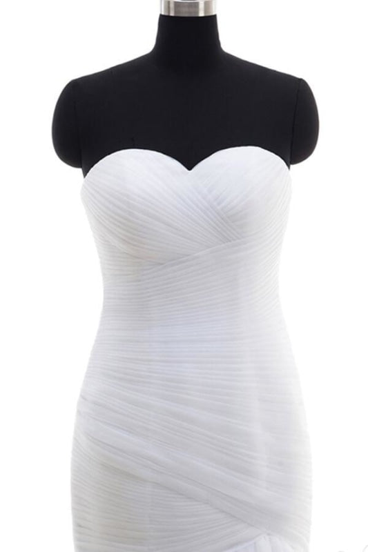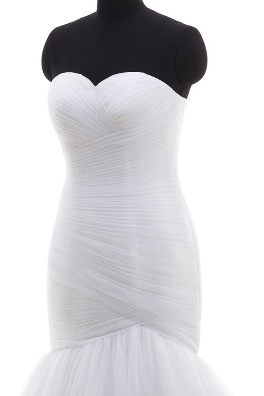 Ruffle Tulle Mermaid Wedding Dress without Straps