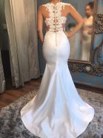 Satin Mermaid Wedding Dresses with Scoop Neckline and Sleeveless Applique