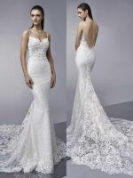 Shiny Sequins Mermaid Wedding Dresses with Backless Appliques Bridal Gowns and Spaghetti Straps