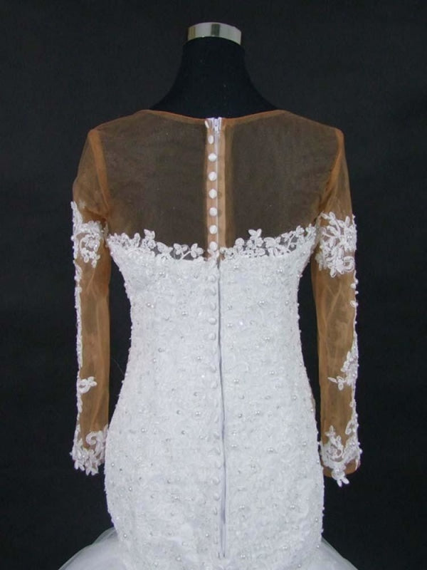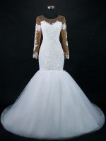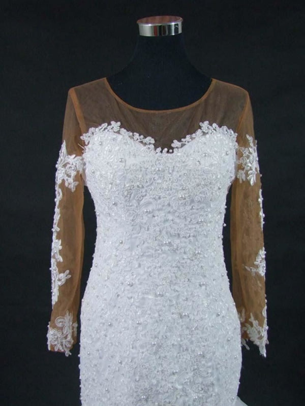 Sophisticated Sheer Neck Long Sleeve Mermaid Wedding Dress with Flawless Lace Details