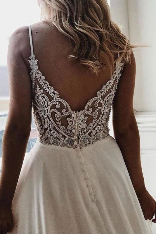 Spaghetti Strap Chiffon Beach Wedding Dress Simple and Elegant