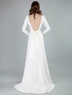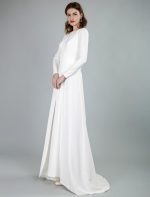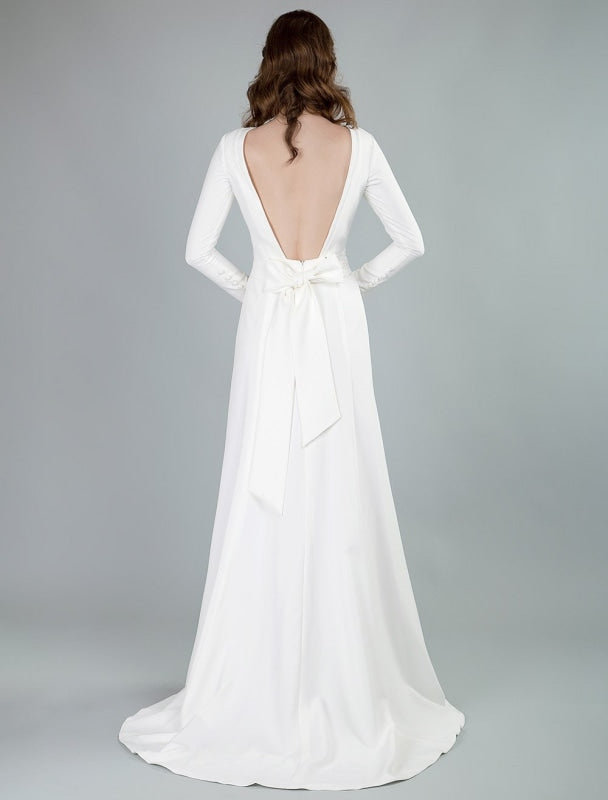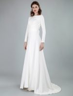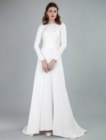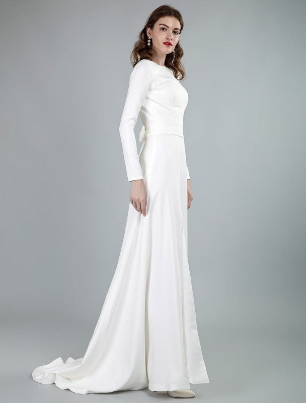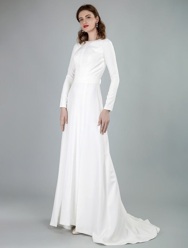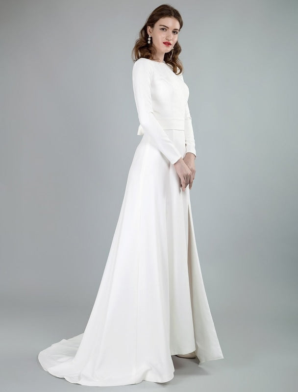 Split Front A-Line Bridal Dresses with Bateau Neckline and Long Sleeves in Lycra Spandex