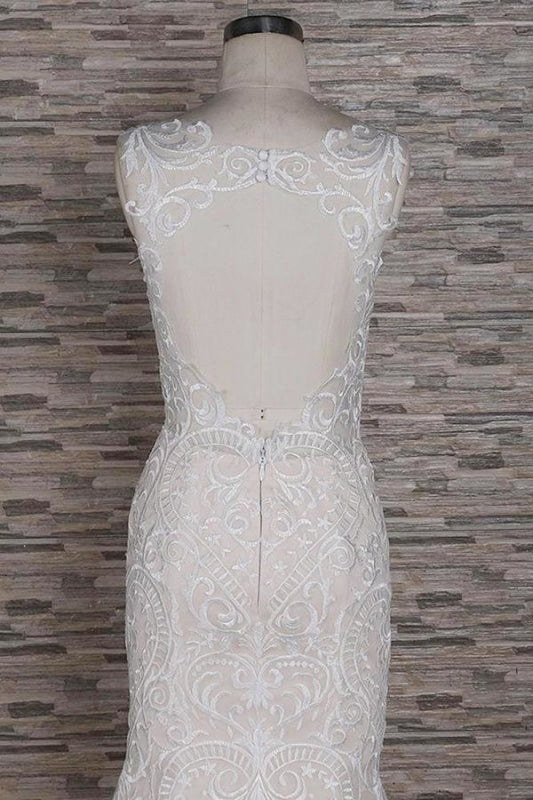 Square Neck Appliques Mermaid Wedding Dress with Elegant Details