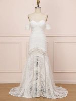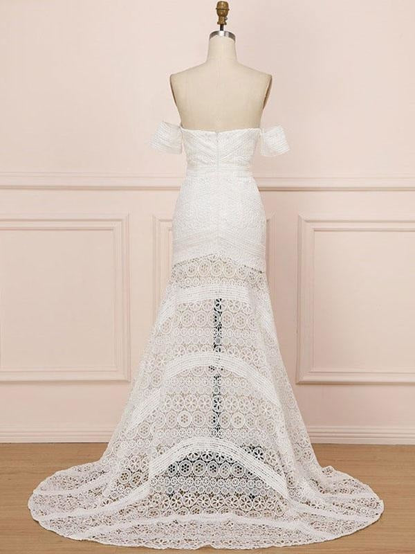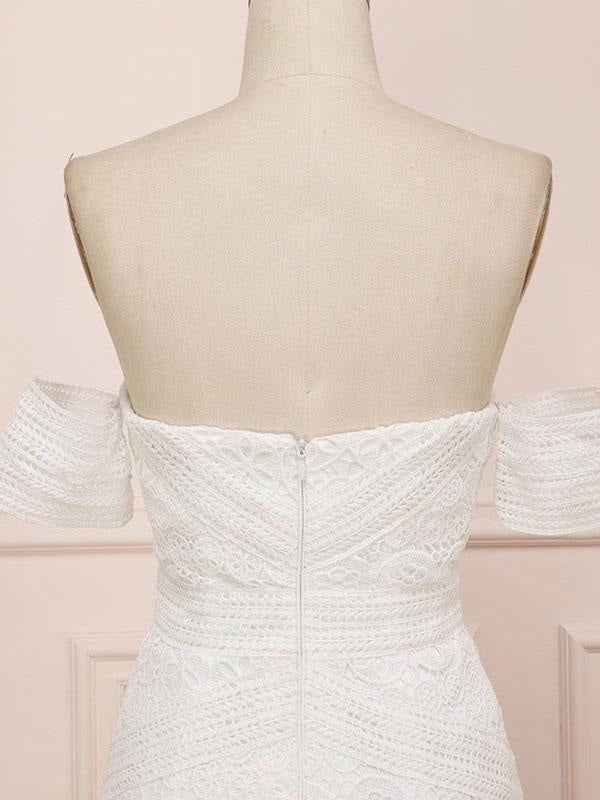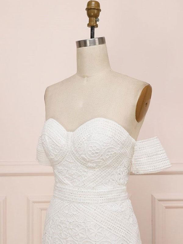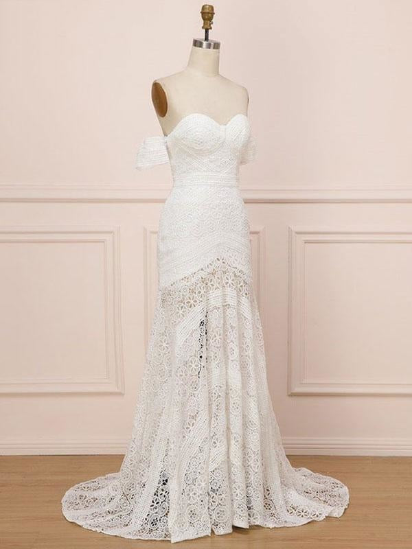 Stunning White Lace Sheath Wedding Dress with Floor-Length and Sweetheart Neck