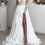 Sweep Brush Train Chiffon A-Line Wedding Dresses with Slit and Long Sleeves
