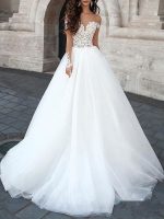 Be the first to review “Sweetheart Neck Ball Gown Princess Wedding Dress with Long Sleeves and Backless Lace Tulle”