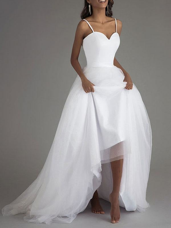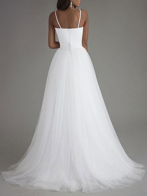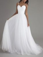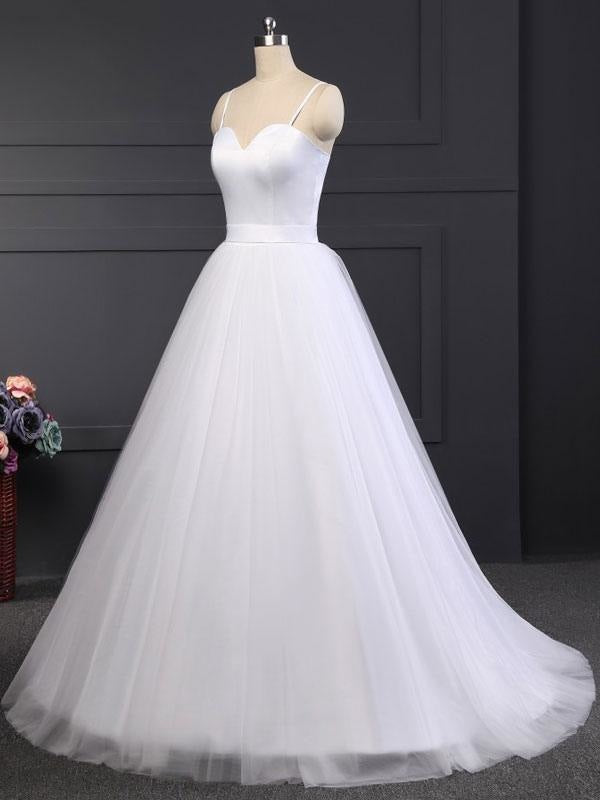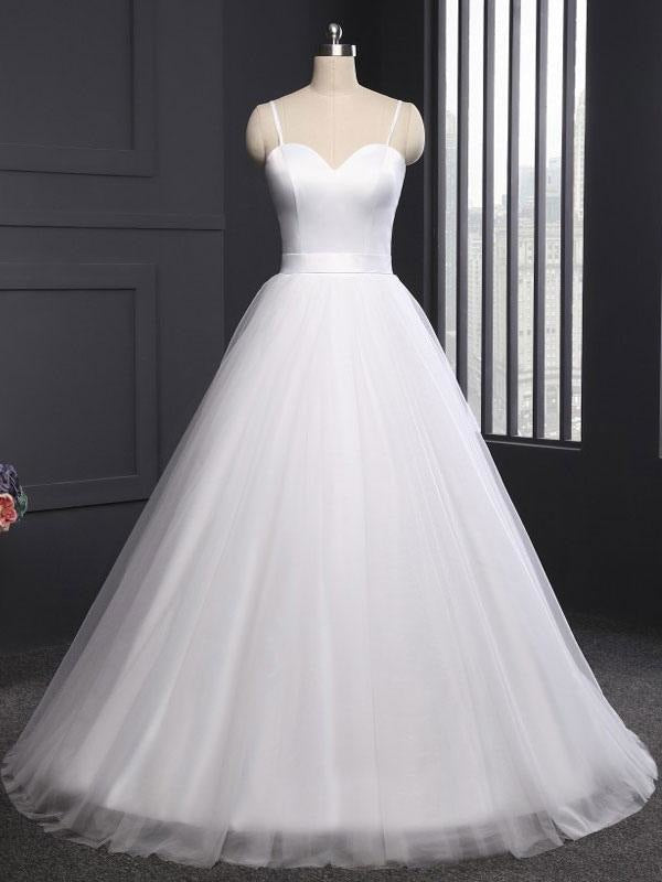 Sweetheart Neckline A-Line Bridal Dresses with Sleeveless Design and Sash in Tulle Fabric