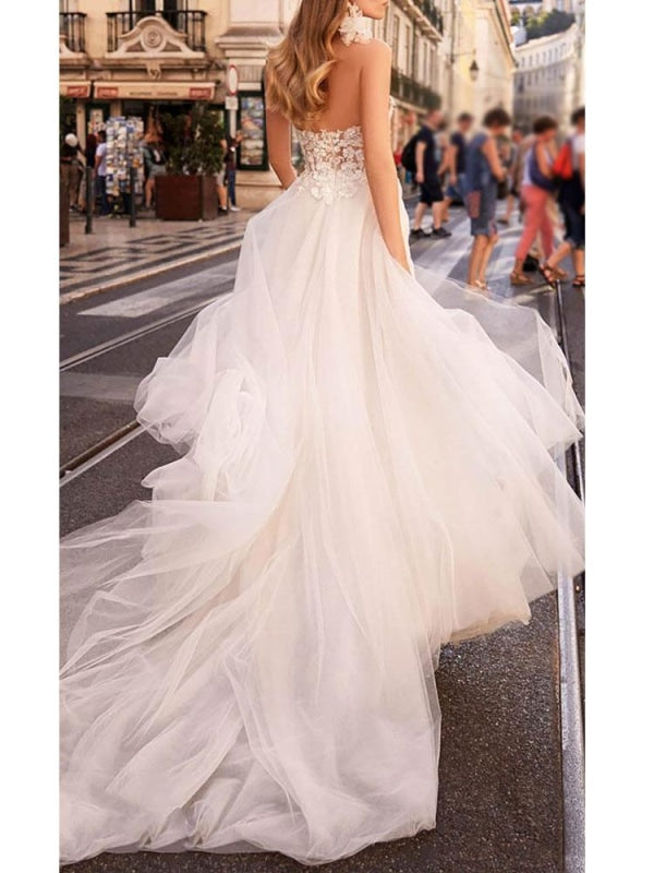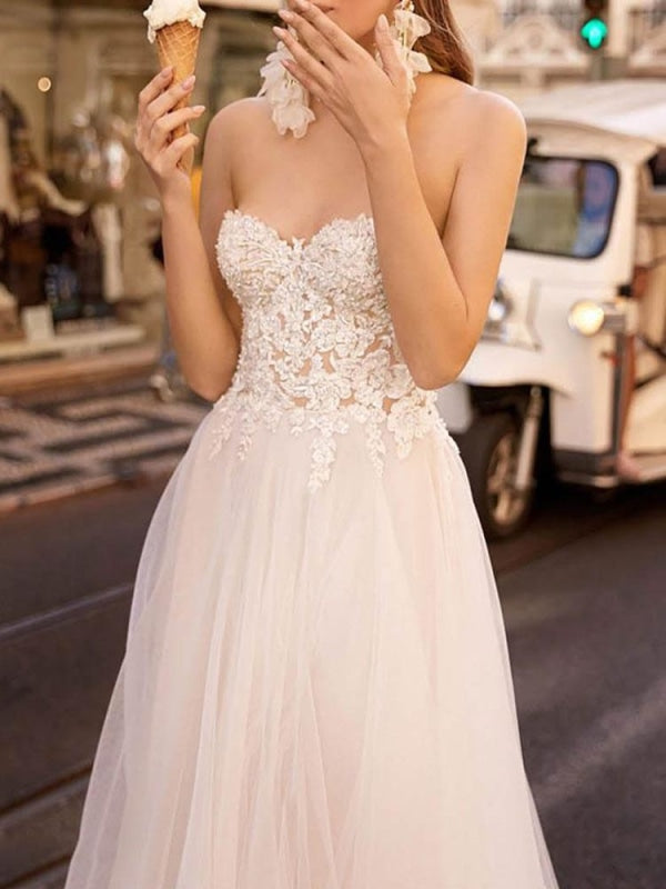 Sweetheart Neckline Bridal Gowns with Sleeveless Design A-Line Silhouette and Lace Flora Details