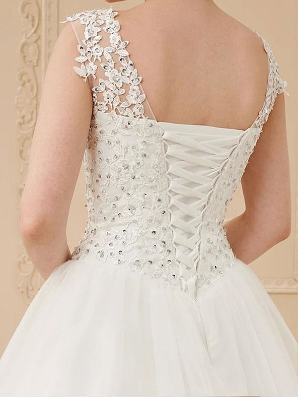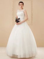 Timeless Jewel Neck Sleeveless Soft Tulle Lace Up Floor Length Bride Dress in Affordable Price Range