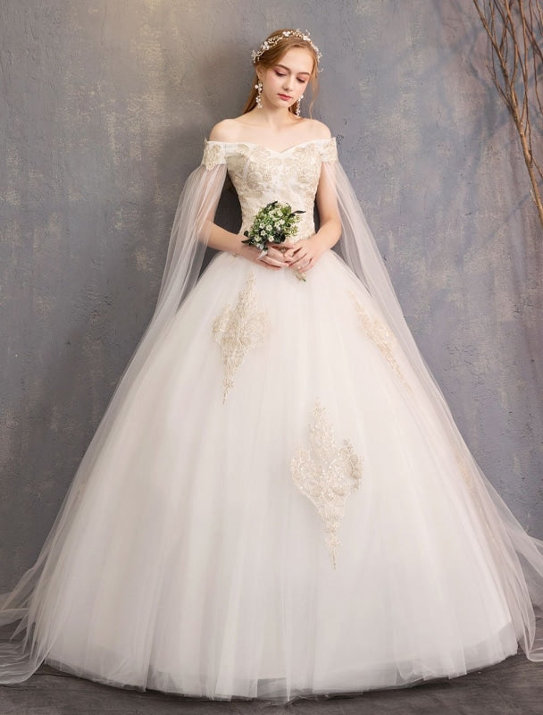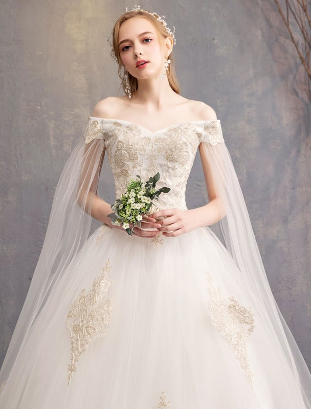 Timeless Tulle Off The Shoulder Short Sleeve Lace Applique Bridal Gown