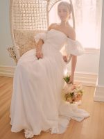 Be the first to review “Timeless White Chiffon Strapless A-Line Wedding Dress with Long Length”