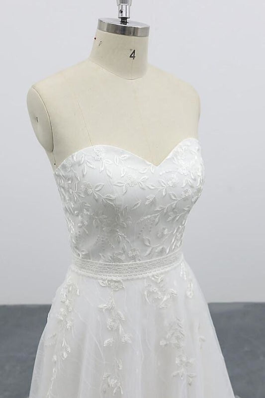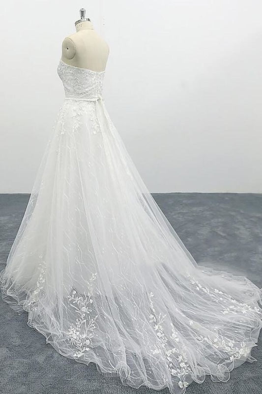 product name: Strapless Tulle Chapel Train A-line Wedding Dress