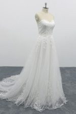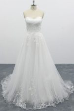 Tulle Chapel Train A-line Wedding Dress without Straps