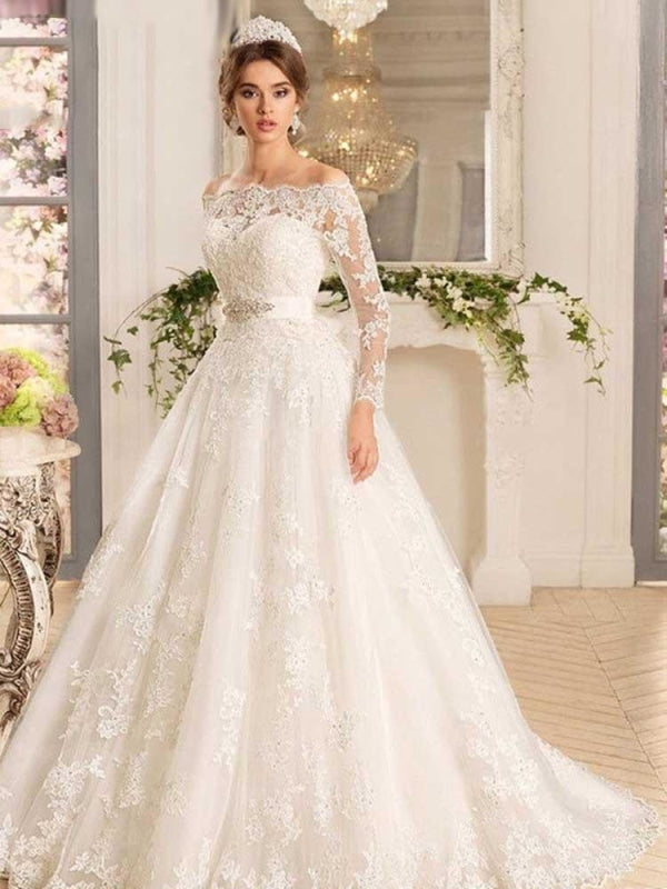 Tulle Ruffles Wedding Dresses with Off-the-Shoulder Style