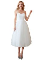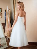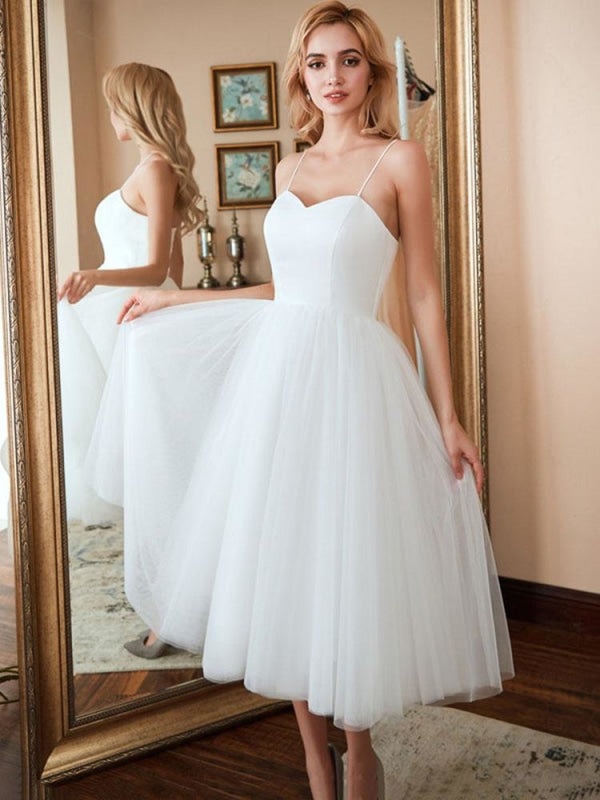 Tulle Short Wedding Dresses with Spaghetti-Strap Lace-Up Design