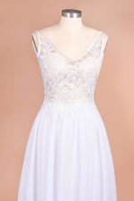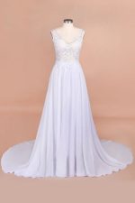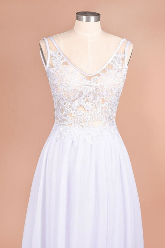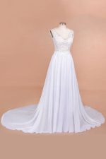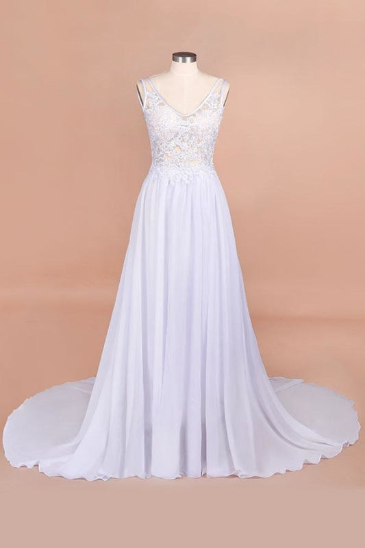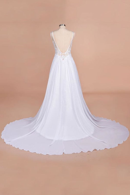 V-neck Lace Chiffon Wedding Dress with Open Back