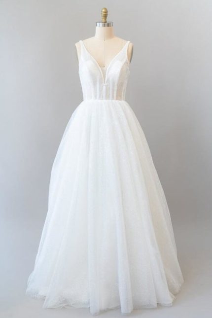 Be the first to review “V-neck Lace Tulle A-line Wedding Dress with Open Back”
