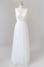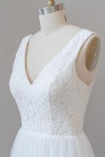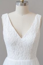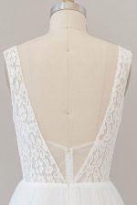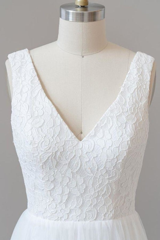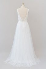 V-neck Lace Tulle A-line Wedding Dress with Open Back