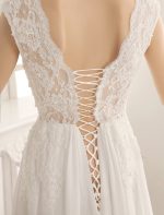Be the first to review “Vintage Chiffon V Neck Beach Bridal Dress with Pearls and Lace”
