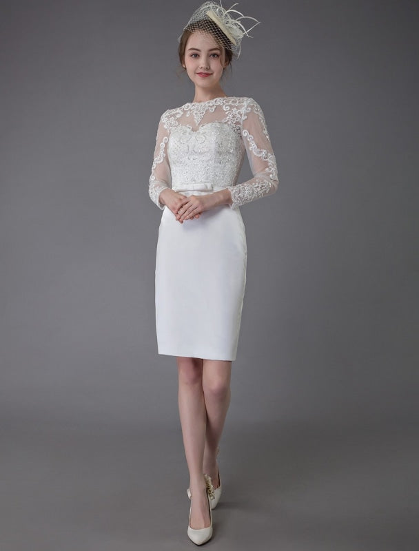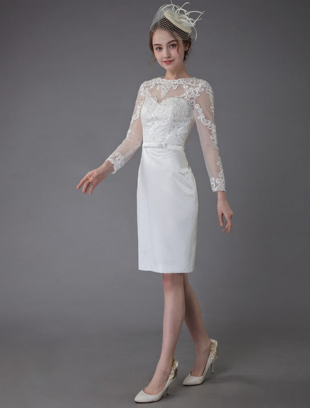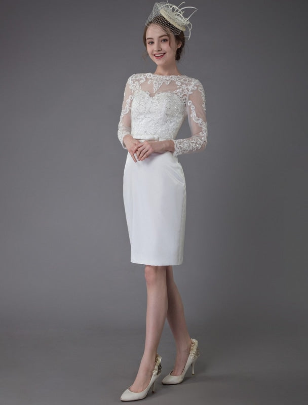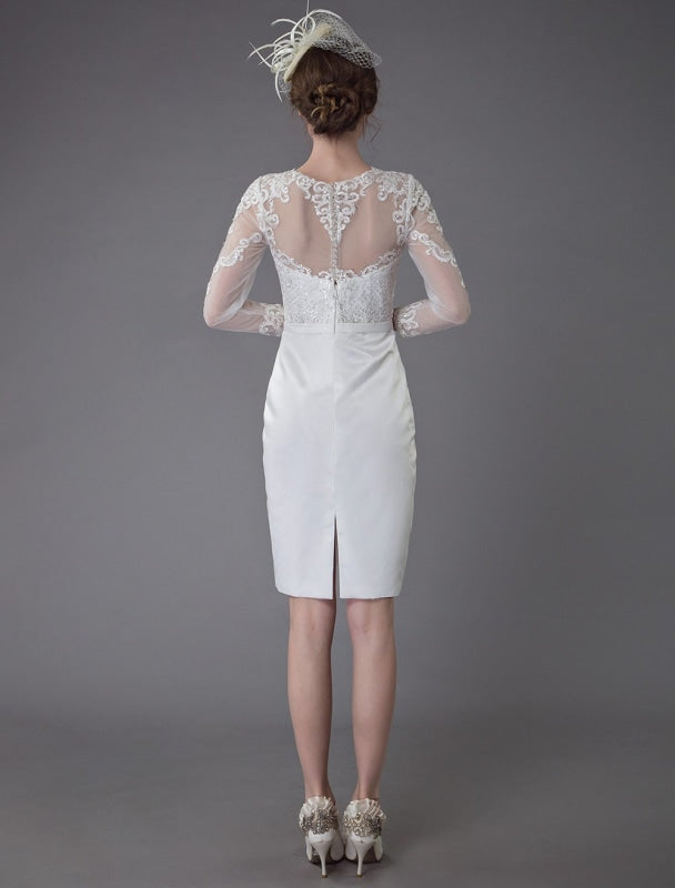Vintage Jewel Long Sleeve Sheath Short Bridal Dress Exclusive Vintage Style