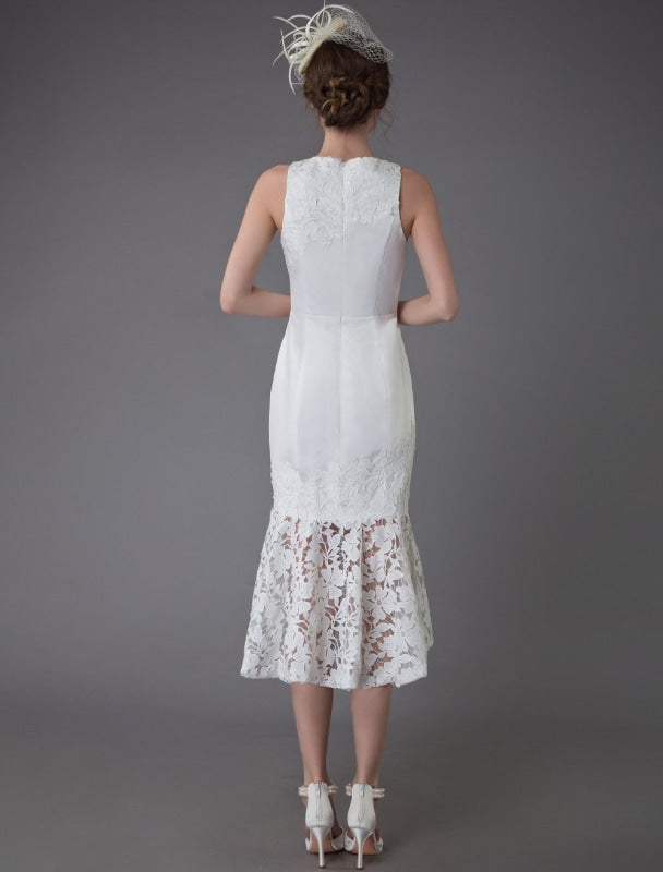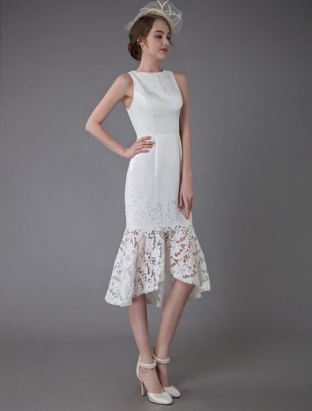 Vintage Jewel Sleeveless Sheath Bridal Dress Short Wedding Dress