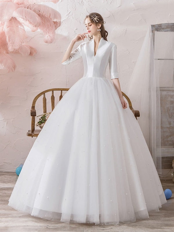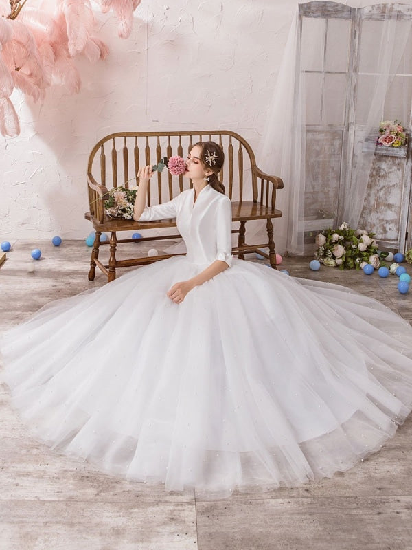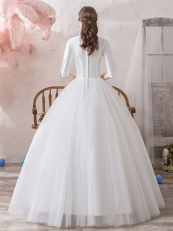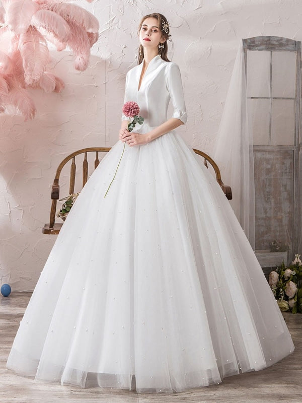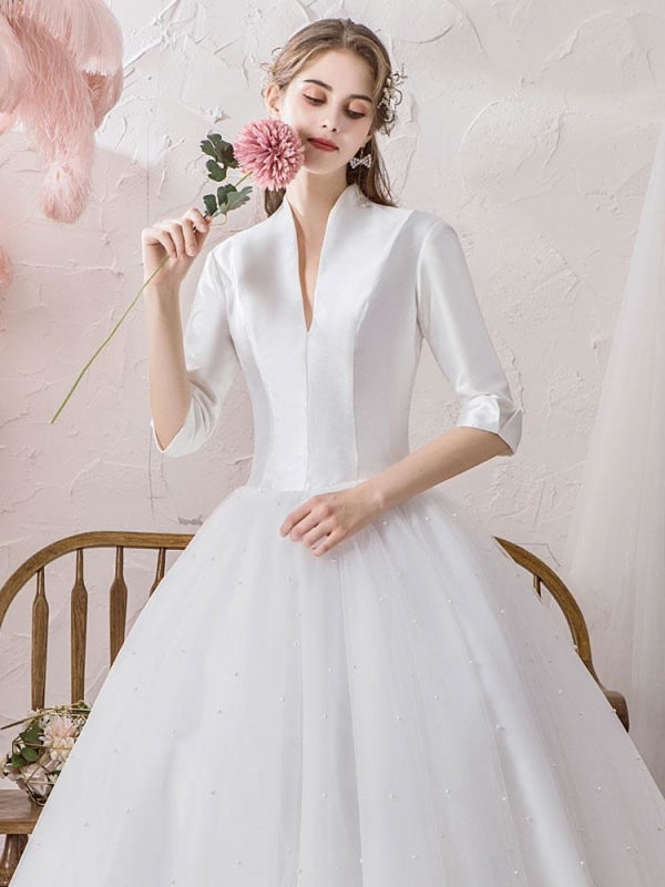 Vintage Princess High Collar Half Sleeve Floor Length Tulle Bridal Gown Vintage Royalty