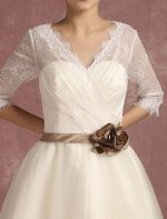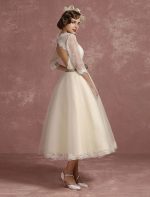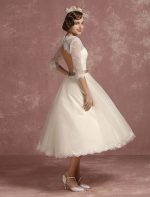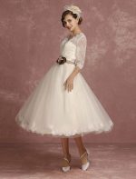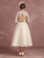 Be the first to review “Vintage Short Lace Tulle Bridal Dress with Half Sleeves and V-Neck Classic Tea Length Gown”