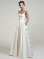 Be the first to review “Vintage Square Neck Sleeveless Satin Bridal Dress with Court Train and Sash Timeless Elegance”