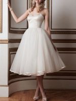 Vintage Sweetheart Neck Sleeveless A-Line Tea Length Bridal Dress Vintage Romance