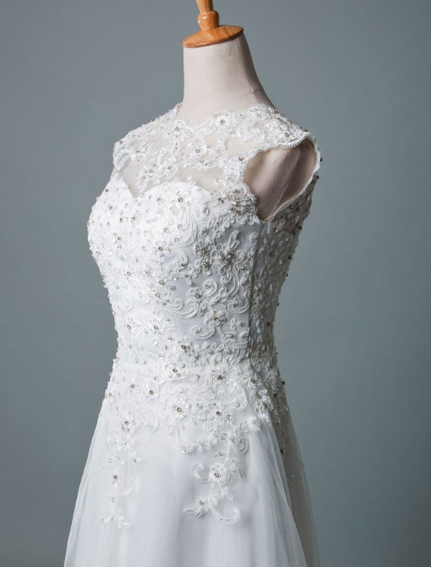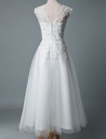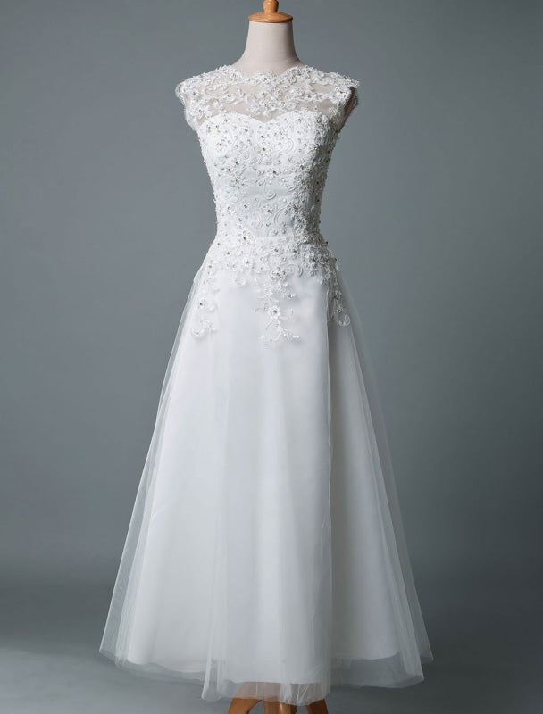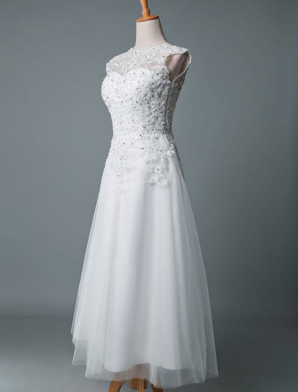 Vintage Tea Length Jewel Neck Sleeveless A-Line Tulle Bridal Dress Exclusive Vintage Charm