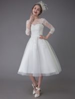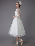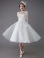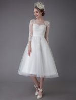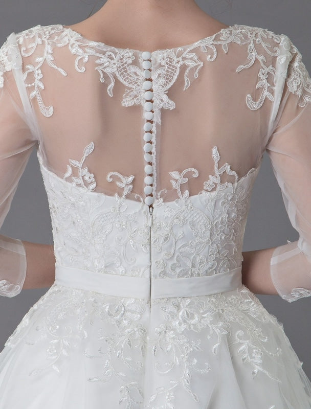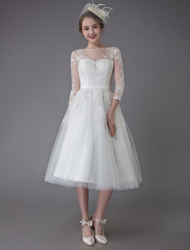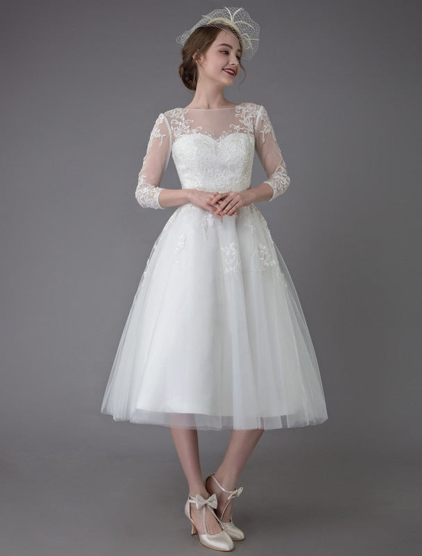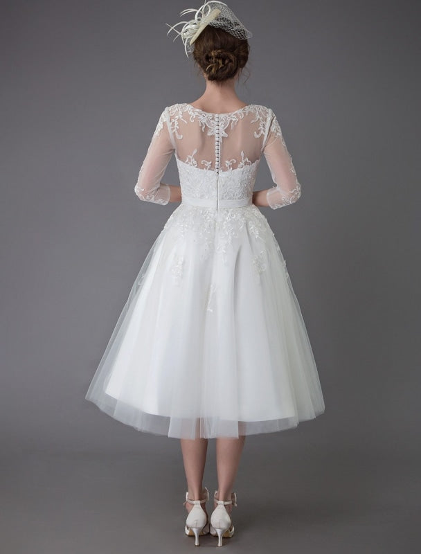 Vintage Tulle Bateau 3/4 Length Sleeve A-Line Bridal Gown Short and Chic Exclusive
