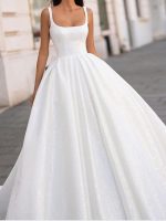 Be the first to review “Vintage White Satin Scoop Neck Ball Gown Wedding Dress with Court Train”