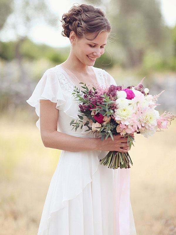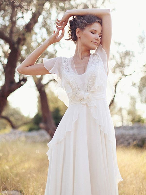 Wedding Dress A Line Designed Neckline Sleeveless Applique Chiffon Bridal Gowns Simple and Elegant