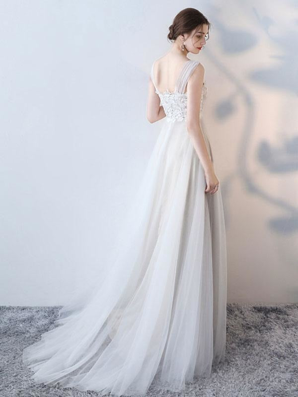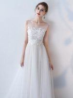 Wedding Dress A Line Jewel Neck Sleeveless Bows Lace Tulle Bridal Dresses Simple and Elegant