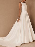 Be the first to review “Wedding Dress Jewel Neck Sleeveless Natural Waist Floor Length Backless Matte Satin Cathedral Train Bridal Dress Vintage Sophistication”
