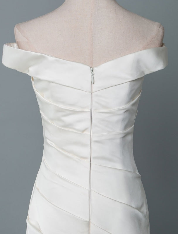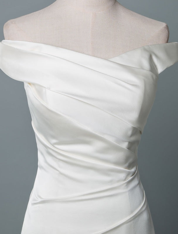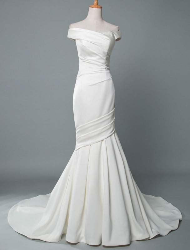 Wedding Dress Mermaid Off-The-Shoulder Sleeveless Pleated Satin Fabric with Train Vintage Glamour